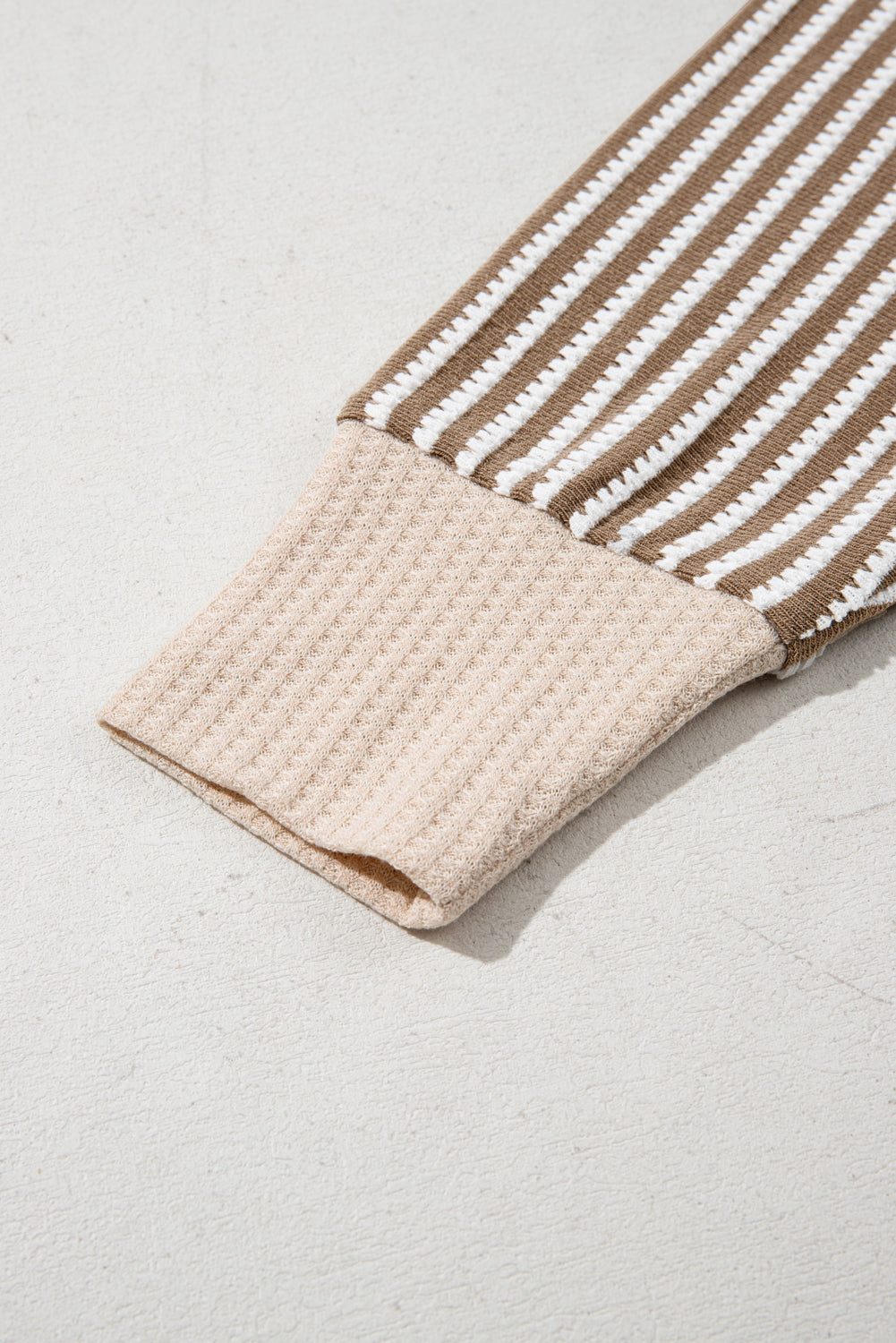 Khaki Stripe Textured Dolman Sleeve High Low Plus Size Top